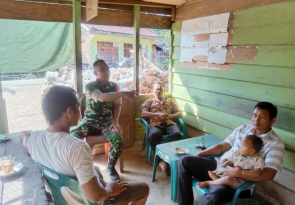 Angkola Timur – Babinsa Koramil 18/Pargarutan Kodim 0212/Tapsel Koptu Asep Elsi melakukan komunikasi sosial (komsos) dengan warga...