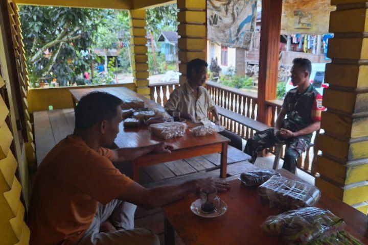 Tambangabn – Babinsa Koramil 14/Kotanopan Kodim 0212/Tapsel Pratu Sahala Poster Sirait melaksanakan anjangsana dan komunikasi sosial (komsos) dengan warga masyarakat di Desa Muara mais Kecamatan Tambangan Kabupaten Mandailing Natal, Jumat (03/04/2024)