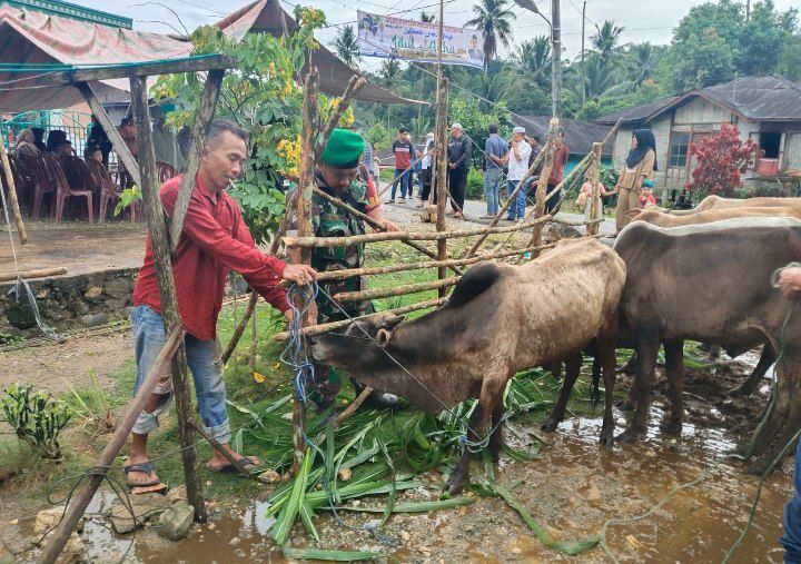 Babinsa Koramil 07/Sosopan Pantau Penyembelihan Hewan Kurban - KODIM 0212/TAPSEL