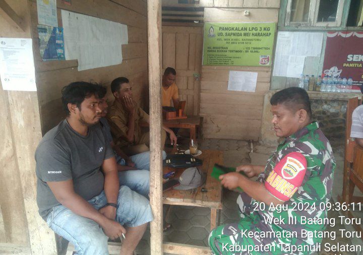 Seperti yang dilakukan Babinsa Koramil 01/Batang Toru Kodim 0212/Tapsel Serka R. Rangkuti bersama perangkat desa melakukan Komunikasi Sosial (Komsos) bersama warga di warung kopi Desa WEK 3 Kecamatan Batang Toru Kabupaten Tapanuli Selatan, Selasa (20/08/2024)
