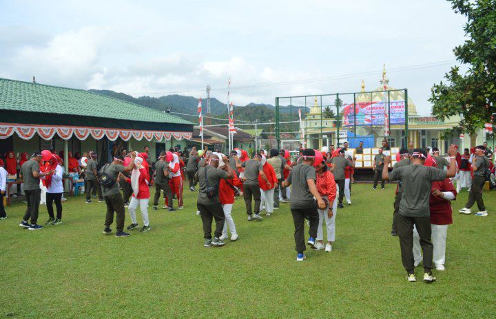 Padangsidimpuan – Dalam rangka memeriahkan HUT Kemerdekaan RI Ke-79, Kodim 0212/Tapsel menggelar kegiatan Semarak lomba ceria yang diikuti seluruh Prajurit-PNS dan ibu-ibu Persit KCK Cab XLV Kodim 0212, yang berlangsung di lapangan Volley Makodim 0212/Tapsel Jln Imam Bonjol Kec. Padangsidimpuan Selatan Kota Padangsidimpuan, Senin (19/08/2024)