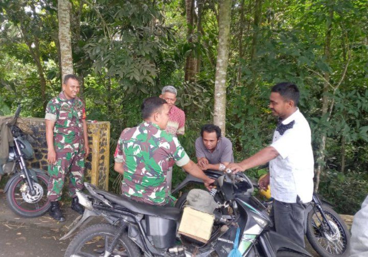 Babinsa Koramil 18/Pargarutan Patroli Wilayah Ingatkan Warga Waspada Bencana Alam - KODIM 0212/TAPSEL