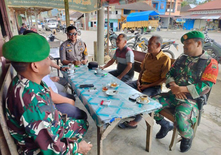 Dalam kegiatannya, Babinsa berkumpul dan berbincang sambil ngopi bersama warga di salah satu warung kopi