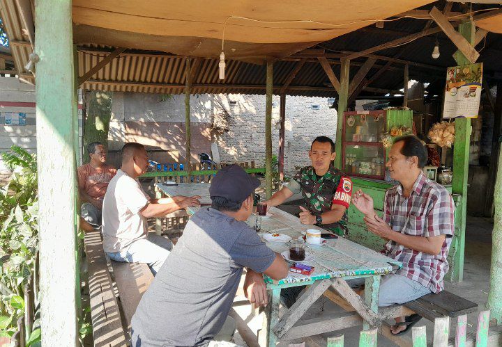 “kami minta kepada warga agar selalu menjaga keamanan, ketertiban, dan keselamatan di lingkungan masing-masing, serta menghindari komunikasi kemasyarakatan yang berpotensi menimbulkan kerawanan di masyarakat” ujar Babinsa kepada beberapa warga desa binaannya