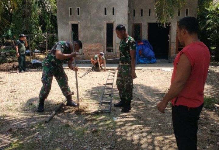 Dukung Kegiatan Masyarakat, Babinsa Koramil 09/Sosa Bantu Warga Pasang Tenda - KODIM 0212/TAPSEL