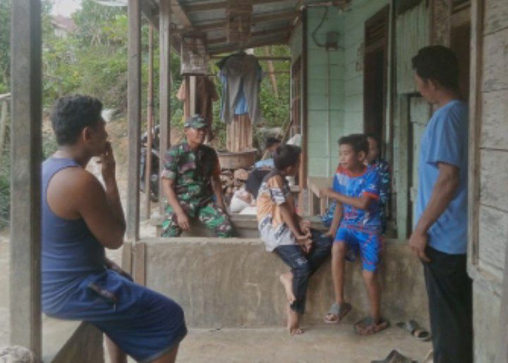Monitoring Wilayah, Babinsa Sertu Kuatno Jalin Komsos dengan Warga Desa Binaan - KODIM 0212/TAPSEL