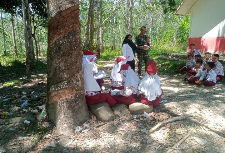Batang Onang – Babinsa 07/Sosopan Kodim 0212/Tapsel Koptu Rudy Faisal Lubis mengajak siswa siswi SDN 100020 Simardona untuk gemar membaca buku bertempat di SDN 100020 Desa Simardona Kecamatan Batang Onang Kabupaten Padang Lawas Utara, Selasa (19/11/2024)