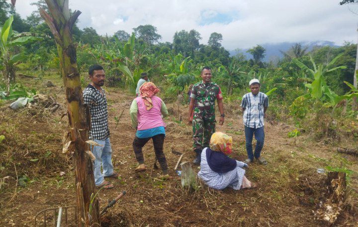 Sembari santai sambil beristirahat di ladang, terlihat suasana ceria dan humanis Babinsa bersama warga dan para Petani, berinteraksi memperbincangkan dalam upaya meningkat kan hasil pertanian baik padi, jagung, dan tanaman buah seperti buah alpukat selain itu juga membahas situasi keamanan kebun milik warga.