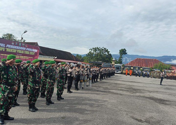 Panyabungan – Koramil 13/Panyabungan Kodim 0212/Tapsel mengerahkan Personel mengikuti Apel Pergeseran Pasukan Ops Mantap Praja Tahun 2024 dalam rangka Pengamanan bertempat di Polres Mandailing Natal Kabupaten Mandailing Natal, Senin (25/11/2024)