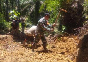 Angkola Sangkunur – Babinsa Koramil 19/Siais Kodim 0212/Tapsel Serda Ali Amransyah Dalimunthe turut serta bergotong royong kerja...