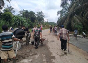 Hutaraja Tinggi – Babinsa Koramil 09/Sosa Kodim 0212/Tapsel Serda Carlies melaksanakan gotong royong bersama warga masyarakat dalam...