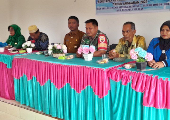 Saipar Dolok Hole – Babinsa Koramil 04/SDH Kodim 0212/Tapsel Serka Anton pane menghadiri Musyawarah Perencanaan Pembangunan (Musrenbang) Desa Ulu Mamis Situnggaling untuk membahas Rancangan Rencana Kerja Pemerintah Desa (RKPDes) Tahun Anggaran 2025 yang berlangsung di Aula Kantor Desa Ulu Mamis Situnggaling Kecamatan Saipar Dolok Hole Kabupaten Tapanuli Selatan, jumat (06/12/2024)