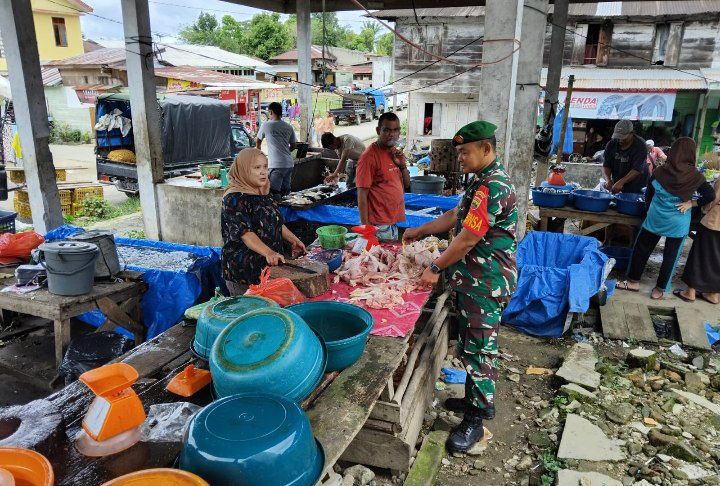 Dalam kegiatannya, Babinsa langsung turun berkeliling pasar melakukan pendataan kepada para pedagang di Pasar tradisional Sipagimbar