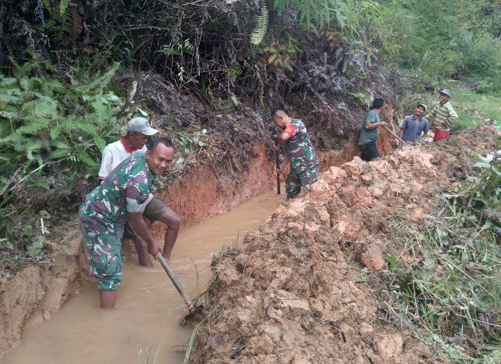 Dukung Ketahanan Pangan, Babinsa Koramil 04/SDH Bantu Perbaikan Saluran Irigasi - KODIM 0212/TAPSEL