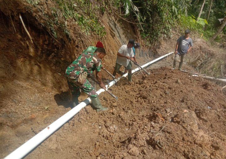 Babinsa Koramil 11/BA Bersama Warga Gotong Royong Perbaiki Pipa Saluran Air Bersih - KODIM 0212/TAPSEL