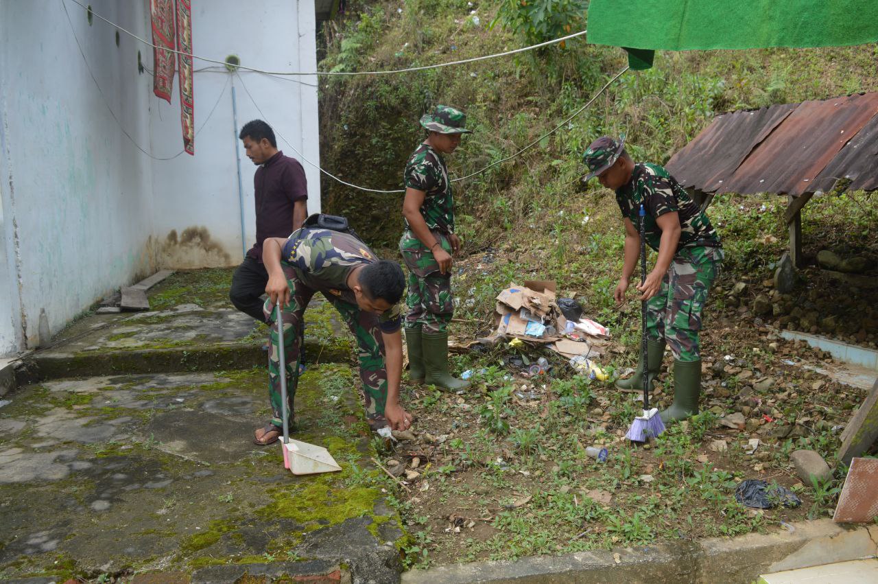 Dalam aksi gotong royong ini anggota Satgas TMMD ke-123 Kodim 0212/Tapsel bahu-membahu membersihkan lantai dan halaman masjid, serta di sekitar masjid juga dirapikan agar semakin asri.