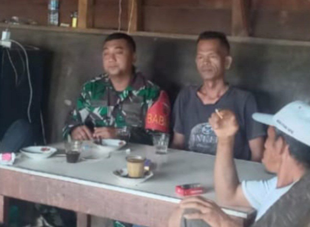 Babinsa Koramil 18/Pargarutan Komsos di Warung Kopi Eratkan Silaturahmi dengan Warga - KODIM 0212/TAPSEL