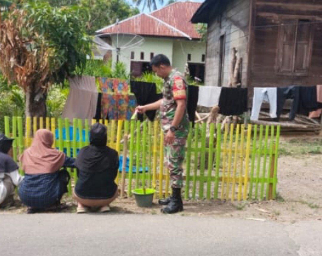 Dalam kegiatannya, Babinsa mengajak peran serta seluruh warga khususnya para anak muda-mudi untuk bergotong-royong melakukan pemasangan dan pengecatan pagar sehingga memberikan kehidupan suasana kampung menjadi indah dan asri