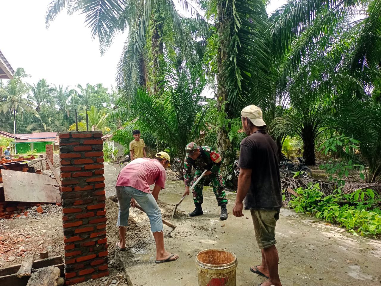 Ulu Barumun – Babinsa Koramil 08/Barumun Kodim 0212/Tapsel Kopda Ibrahim Harahap melaksanakan monitoring wilayah dilanjutkan membantu warga desa binaannya dalam pembuatan pondasi dan pagar rumah warga di Desa Huta Nopan Kecamatan Ulu Barumun Kabupaten Padang Lawas, Minggu (13/07/2025)