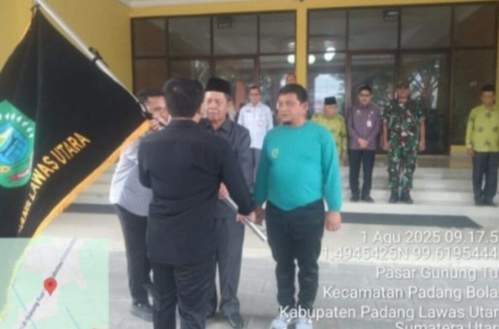 PALUTA – Danramil 05/PB Kodim 0212/Tapsel Kapten Cpl MS. Nasution menghadiri pelepasan atlet Ikatan Pencak Silat Indonesia (IPSI) Padang Lawas Utara (Paluta) untuk mengikuti Pertandingan 3rd Internasional Pencak Silat Indonesia Open Championship 2025 di Halaman Kantor Bupati Padang Lawas Utara, Jum’at (01/08/2025)