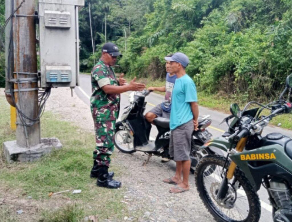 Muara Sipongi – Babinsa Koramil 15/MS Kodim 0212/Tapsel Serda Sarto melaksanakan kegiatan rutin patroli keliling wilayah dan monitor ke wilayah binaannya di Koto Boru Kecamatan Muara Sipongi Kabupaten Mandailing Natal, Minggu (03/08/2025)