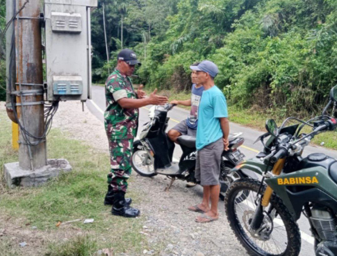 “seperti hari-hari biasanya, hari ini kembali kami menyapa beberapa warga, selain untuk memonitor situasi wilayah, kami juga terus menjalin dan mempererat jalinan silaturahmi dengan warga, walaupun hanya sekedar mampir berbincang dengan warga” ujar Babinsa