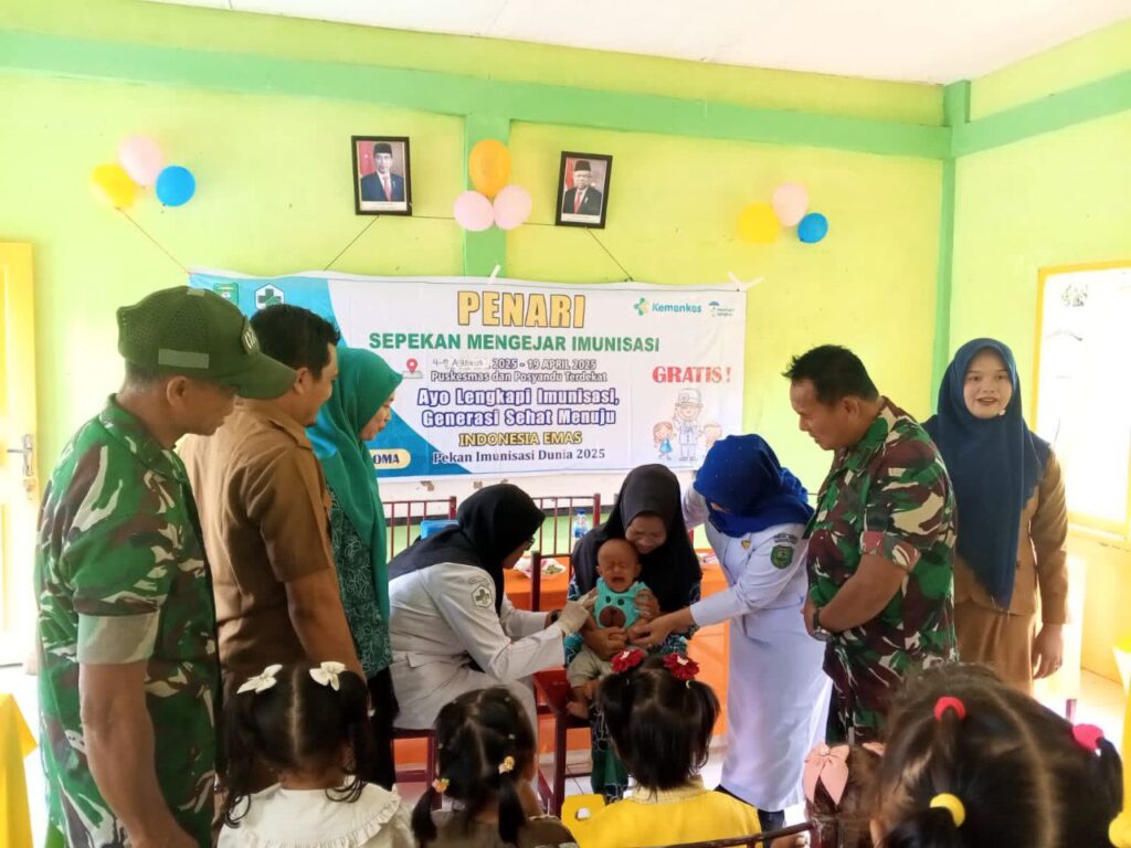 Batang Natal – Danramil 16/Batang Natal Kodim 0212/Tapsel Kapten Inf Zamril bersama Kepala Puskesmas Batang Natal menghadiri kegiatan Pekan Mengejar Imunisasi (Penari) dalam rangka Pekan Imunisasi Dunia 2025 yang digelar di Kantor Desa Bangkelang Kecamatan Batang Natal Kabupaten Mandailing Natal, Selasa (05/08/2025). Kegiatan ini dihadiri juga oleh Kepala Desa Bangkelang, TP PKK Desa Bangkelang dan para kader Posyandu dan diselenggarakan oleh tim tenaga medis setempat