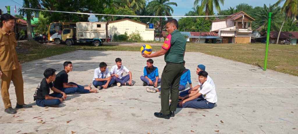 Sosa – Babinsa Koramil 09/Sosa Kodim 0212/Tapsel Sertu Riswan Hasibuan memberikan pelatihan bola Volly dan memotovasi siswa SMPN 1 Sosa untuk lebih giat berlatih bola volley bertempay di lapangan olah raga SMPN 1 Sosa Desa Pasar Ujung Batu Kecamatan Sosa Kabupaten Padang Lawas, Selasa (26/08/2025)