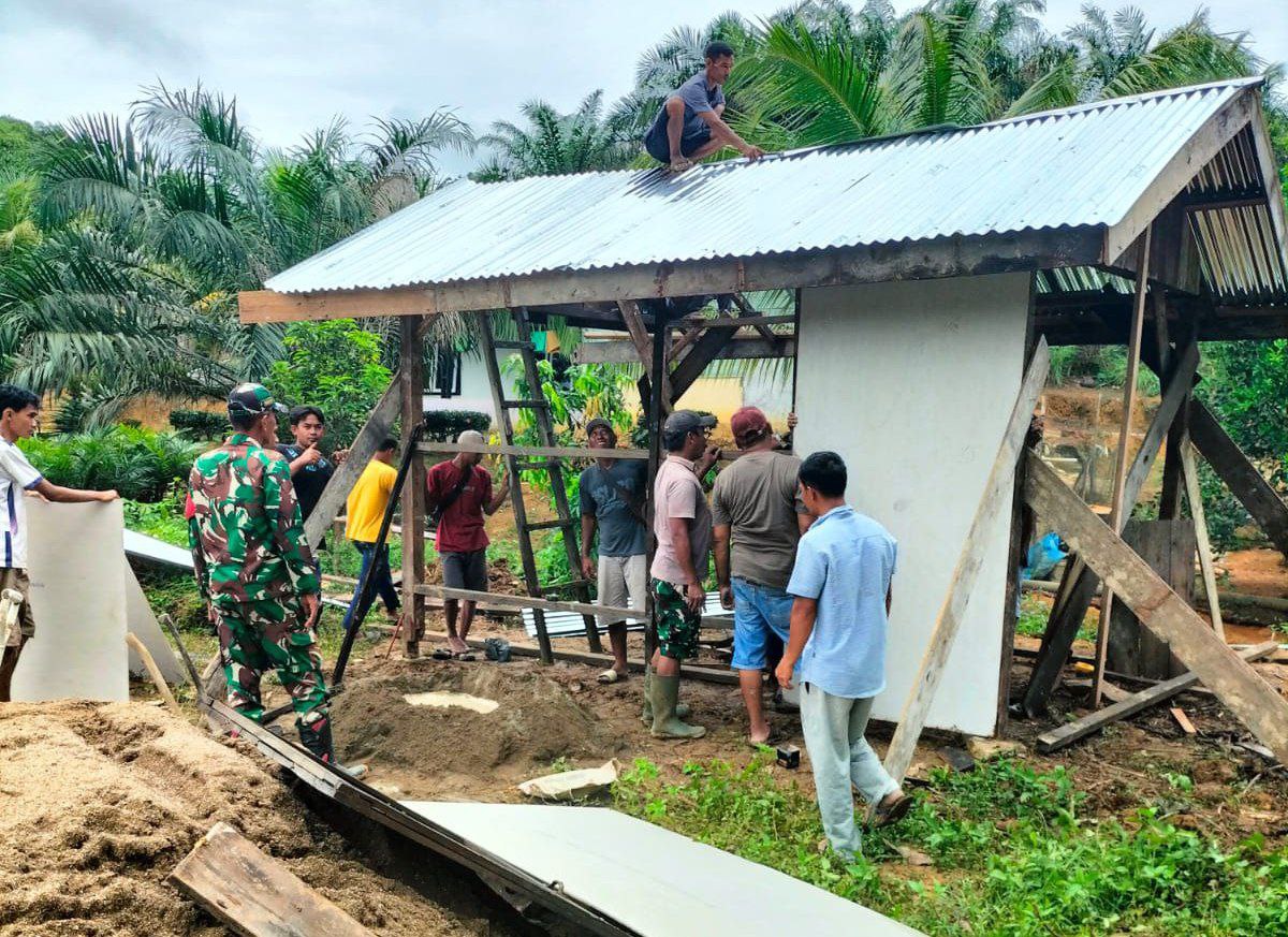 Babinsa Koramil 17/Natal Gotong Royong Dirikan Posyandu Bersama Warga Desa Tunas Karya - KODIM 0212/TAPSEL