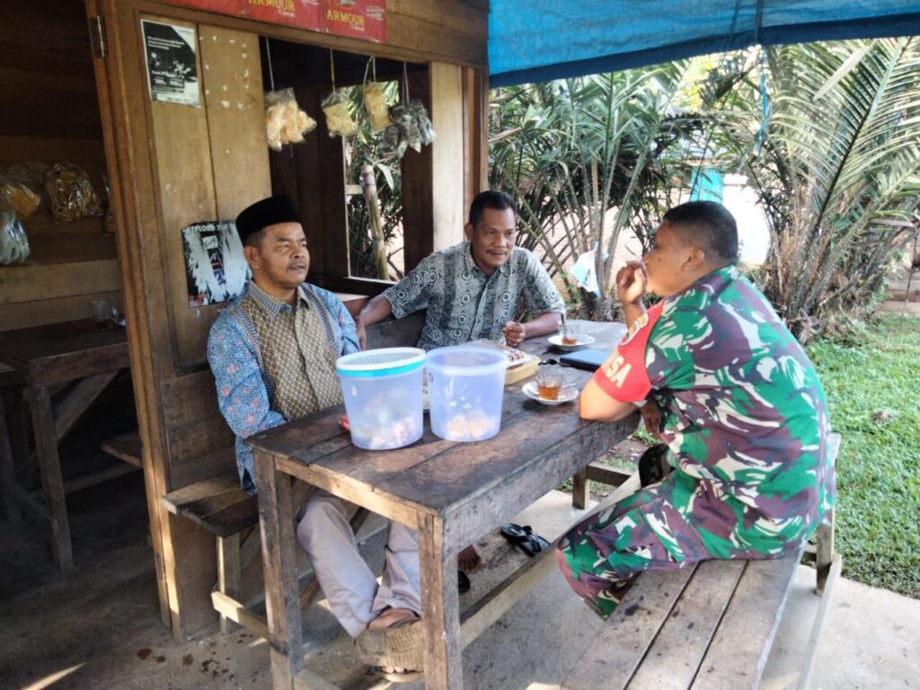 Batang Toru – Babinsa Koramil 01/Batang Toru Kodim 0212/Tapsel Kopda Isnen Napitupulu melaksanakan komunikasi sosial (Komsos) bersama dengan tokoh masyarakat dan warga desa Garoga bertempat di salah satu warung kopi Desa Garoga Kecamatan Batang Toru Kabupaten Tapanuli Selatan, Jumat (07/11/2025)