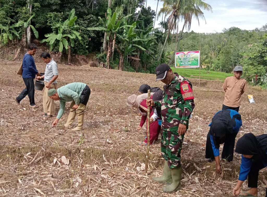 Babinsa Koramil 04/SDH Hadiri Penanaman Jagung Serentak Program Ketahanan Pangan Desa Tolang - KODIM 0212/TAPSEL