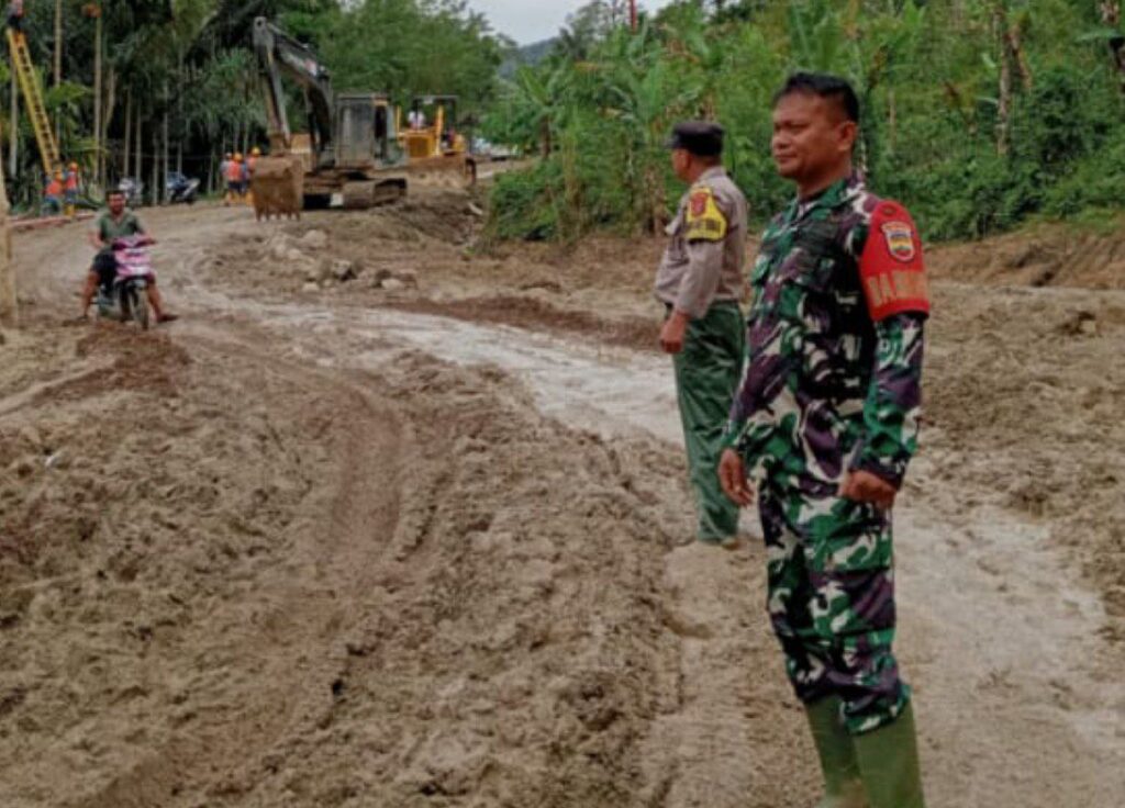 Sementara itu, Babinsa Serma robby di sela kegiatannya mengatakan, pihaknya bersama personel lainnya terus berupaya membuka akses jalan dan membantu warga yang akan melintasi jalan