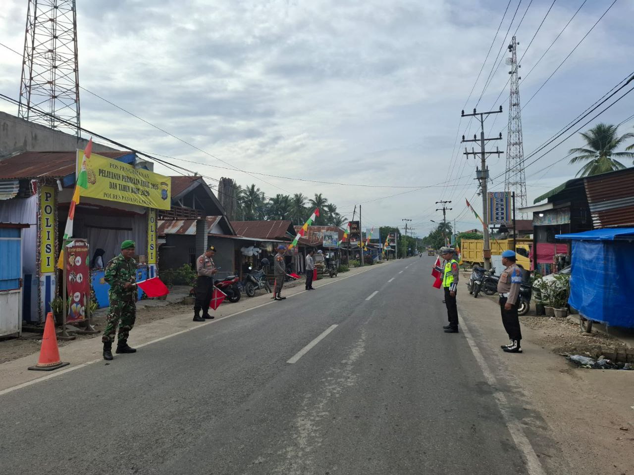 Babinsa Koramil 10/Barteng bersama Personel Gabungan Siaga Nataru Amankan Jalur Lintas - KODIM 0212/TAPSEL