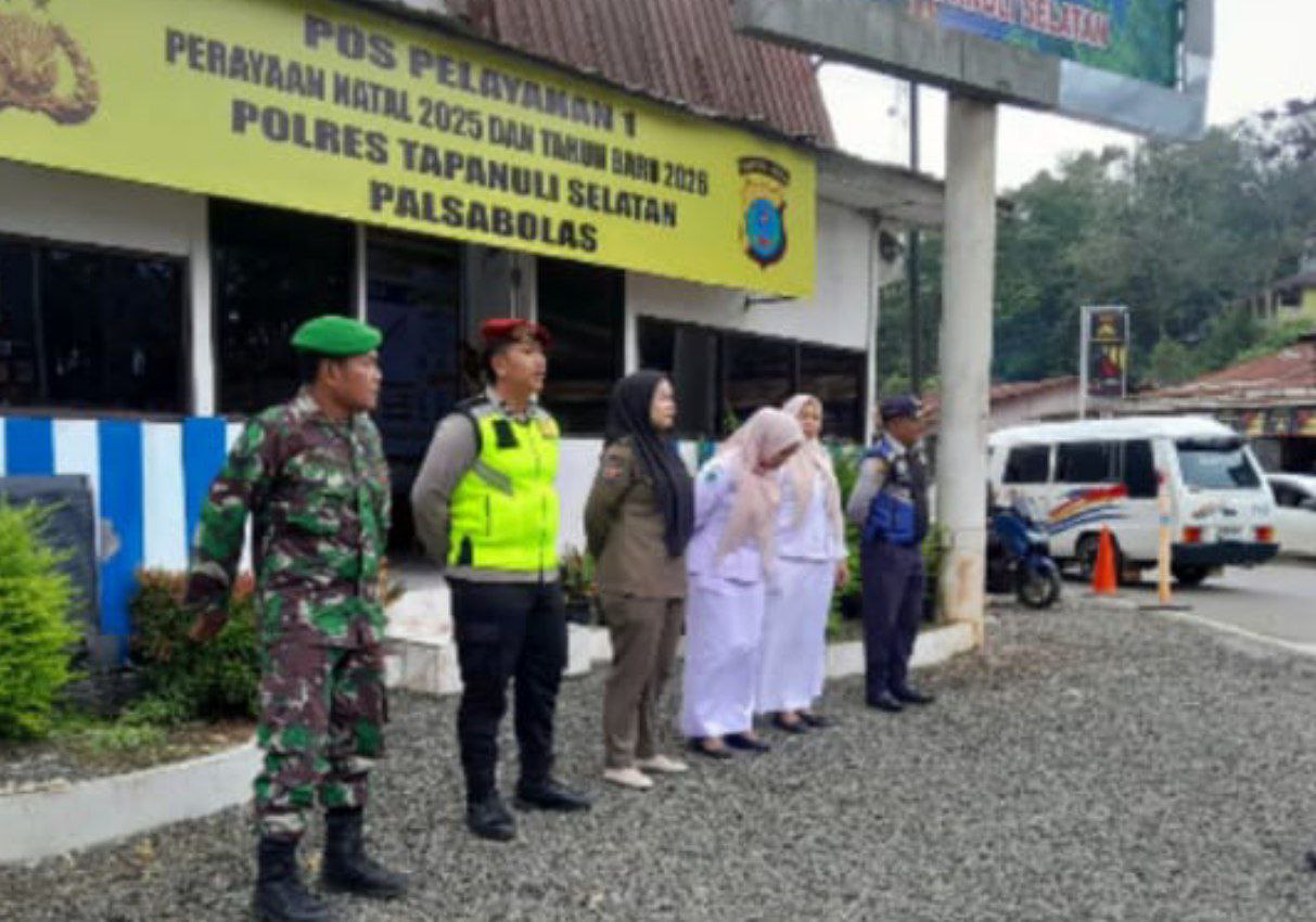 Angkola Timur – Babinsa Koramil 18/Pargarutan Kodim 0212/Tapsel Sertu Rahmad J. Pulungan dan Sertu Mahyaruddin Siregar melaksanakan Kegiatan Siaga Pengamanan Natal dan Tahun Baru (Nataru) bersama anggota Polres Tapanuli Selatan, Satpol PP, Dishub dan Dinkes, bertempat di Pos Pelayanan Desa Pal Sabolas Kecamatan Angkola Timur Kabupaten Tapanuli Selatan, Jumat (02/01/2026)