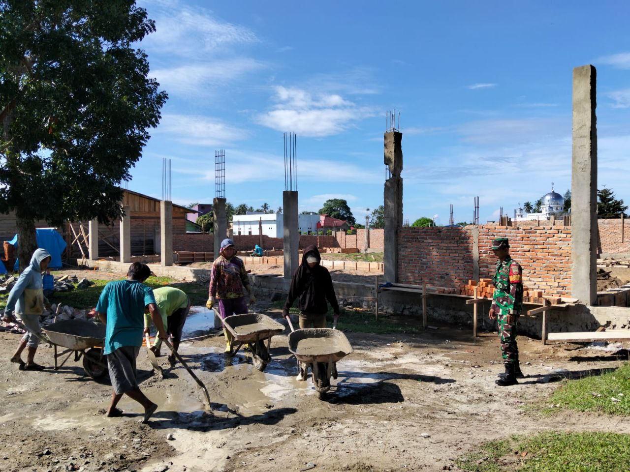 Selama kegiatan, Babinsa Serda Indra Saleh turun langusng memastikan proses pembangunan berjalan sesuai rencana serta memperhatikan aspek keselamatan para pekerja di lokasi.