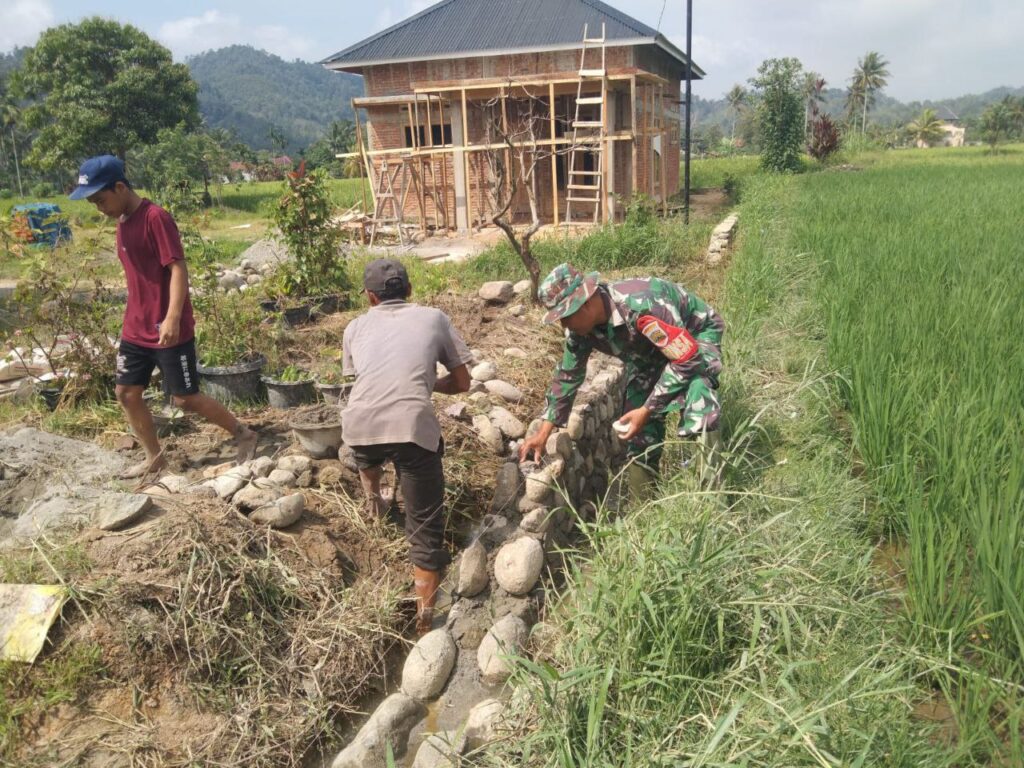 Padangsidimpuan – Babinsa Koramil 02/Kota Psp (Padasidimpuan) Kodim 0212/Tapsel Serka yahya melaksanakan kegiatan Pendampingan ketahanan pangan dan membantu warga dan petani membuat pondasi pembatas sawah di Lahan persawahan Poktan Dasniroha Kel.Timbangan Kec. Psp Utara Kota Padangsidimpuan, Senin (09/03/2026)