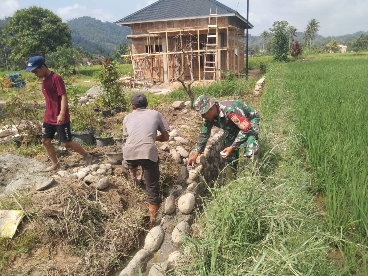 “batas pondasi ini merupakan batas area persawahan dan lingkungan rumah warga, dengan cara ini mudah-mudahan lingkungan perumahanan maupun area persawahan tidak lagi ada permasalahan terkait pengairan sawah” ujar Babinsa