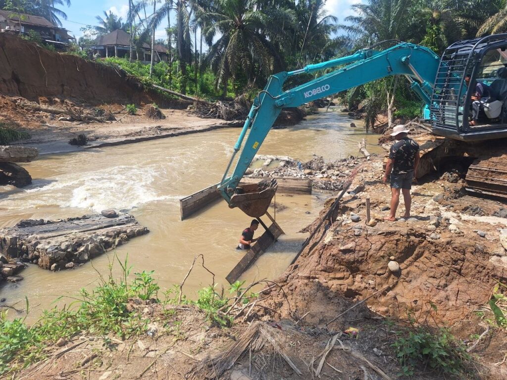 Angkola Sangkunur – Babinsa Koramil 19/Siais Kodim 0212/Tapsel Serda Ali Amransyah melaksanakan pendampingan terhadap operator alat berat dalam rangka mempersiapkan Lokasi Pembangunan Jembatan Modular di Desa Bandar Tarutung Kecamatan Angkola Sangkunur Kabupaten Tapanuli Selatan, Senin (27/06/2026)