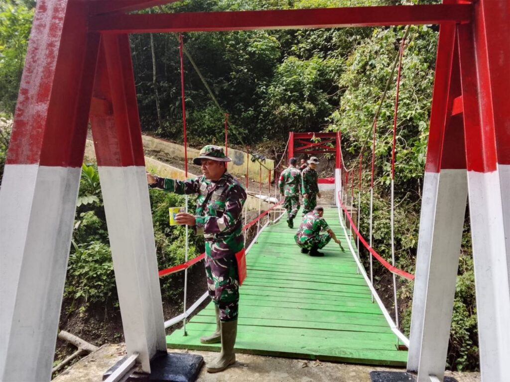 Pembangunan infrastruktur tersebut terus dikebut oleh jajaran Koramil 14/Kopan bersama warga setempat sejak beberapa waktu terakhir. progres pembangunan jembatan masih berlangsung dengan tahap pengecatan dan finishing