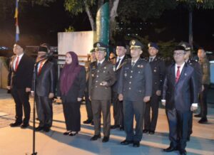 Tapsel – Komandan Kodim (Dandim) 0212/Tapsel, Letkol Arm Delli Yudha Adi Nurcahyo, S.E., M.M memimpin upacara penurunan...
