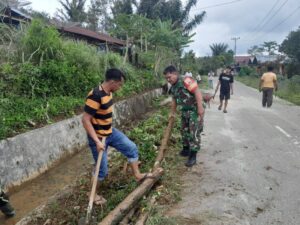 Saipar Dolok Hole – Babinsa Koramil 04/SDH Kodim 0212/Tapsel Serka Anton Pane bersama warga melaksanakan gotong royong...