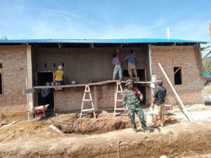 Komsos dengan Pekerja Bangunan , Babinsa Koramil 08/Barumun Berpesan agar Berhati-hati dalam Bekerja