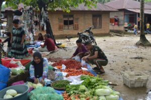 Palas – Guna memenuhi kebutuhan, Satgas TMMD Ke-123 Kodim 0212/Tapsel berbelanja di pasar tradisional di Desa Pintu...