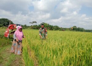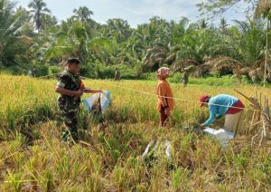 Huristak – Babinsa Koramil 10/Barteng Kodim 0212/Tapsek Praka Ahmad Rifai Siregar melaksanakan pemantauan perkembangan tanaman padi sawah...