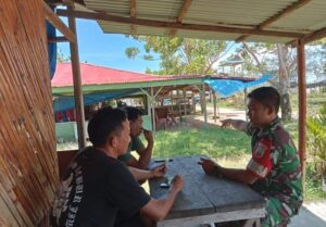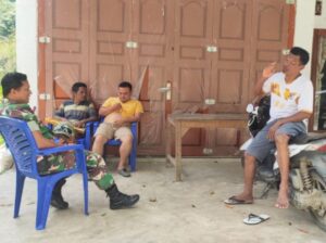 Natal – Babinsa Koramil 17/Natal Kodim 0212/Tapsel Kopda Tri Widodo melaksanakan komsos dengan warga di wilayah binaan...