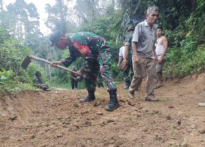 Panyabungan Selatan – Babinsa Koramil 13/Panyabungan Kodim 0212/Tapsel Sertu Albaini bersama warga masyarakat setempat melaksanakan kegiatan gotong...