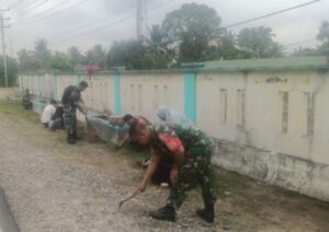 Batang Angkola – Babinsa Koramil 11/BA Kodim 0212/Tapsel dipimpin Sertu Hans Simamora bersama warga melaksanakan gotong royong...