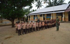 Palas – Anggota Satgas TNI Manunggal Membangun Desa (TMMD) ke-123 Kodim 0212/Tapsel memberikan pelatihan baris-berbaris (PBB) kepada...