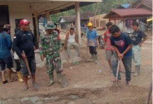 Tantom Angkola – Babinsa Koramil 11/BA Kodim 0212/Tapsel Serka Tunggul Panggabean bersama warga melaksanakan gotong royong membersihkan...
