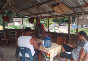 Halongonan – Babinsa Koramil 05/PB Kodim 0212/Tapsel Serka Iwaldi Putra melaksanakan monitor wilayah dan Komunikasi Sosial (Komsos)...